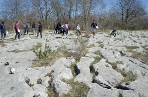 Jura/16 avril 2014. Ecole de terrain de fin d’année pour les Licences 1èreannée en sciences de la Terre de Dijon. Au programme : études géomorphologiques, sédimentologiques et tectoniques dans le Jura.