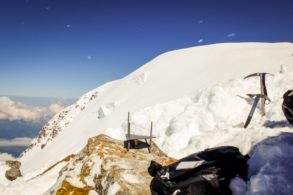 Chamonix_ mise en place d’un point GPS sous le sommet du mont-blanc afin de mesurer la vitesse de création de relief du Mont-Blanc.