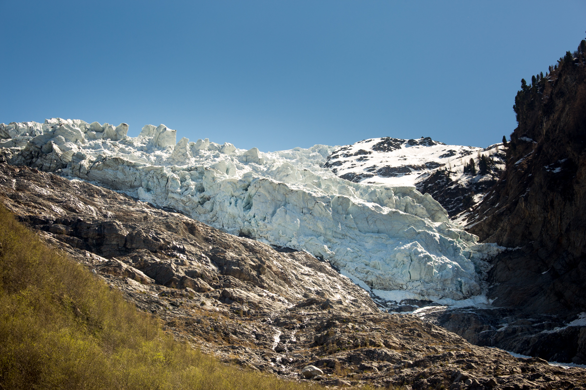 Le front du glacier des Bossons en 2015. Analyses géomorphologiques traces glaciaires et du fontionnement de la rivière pro-glaciaire des Bossons