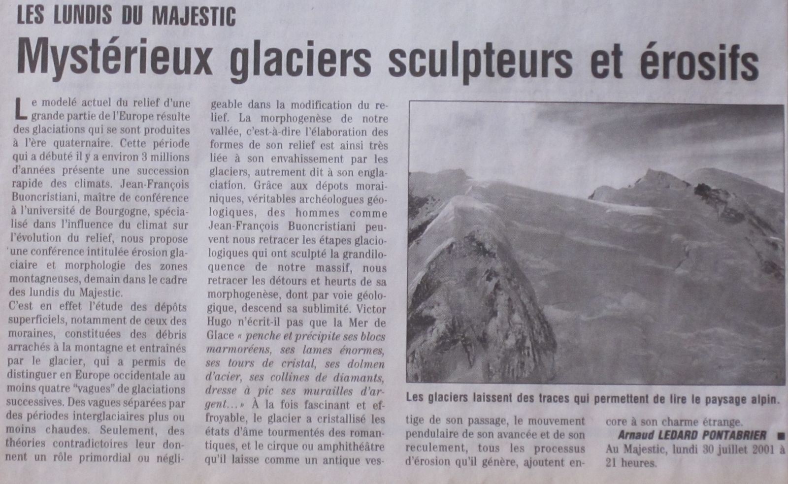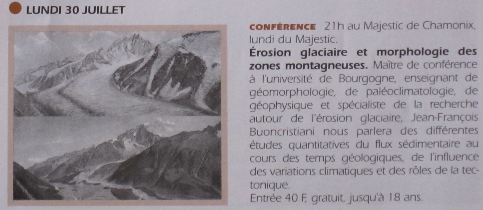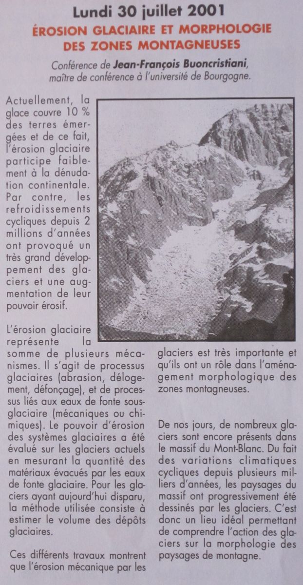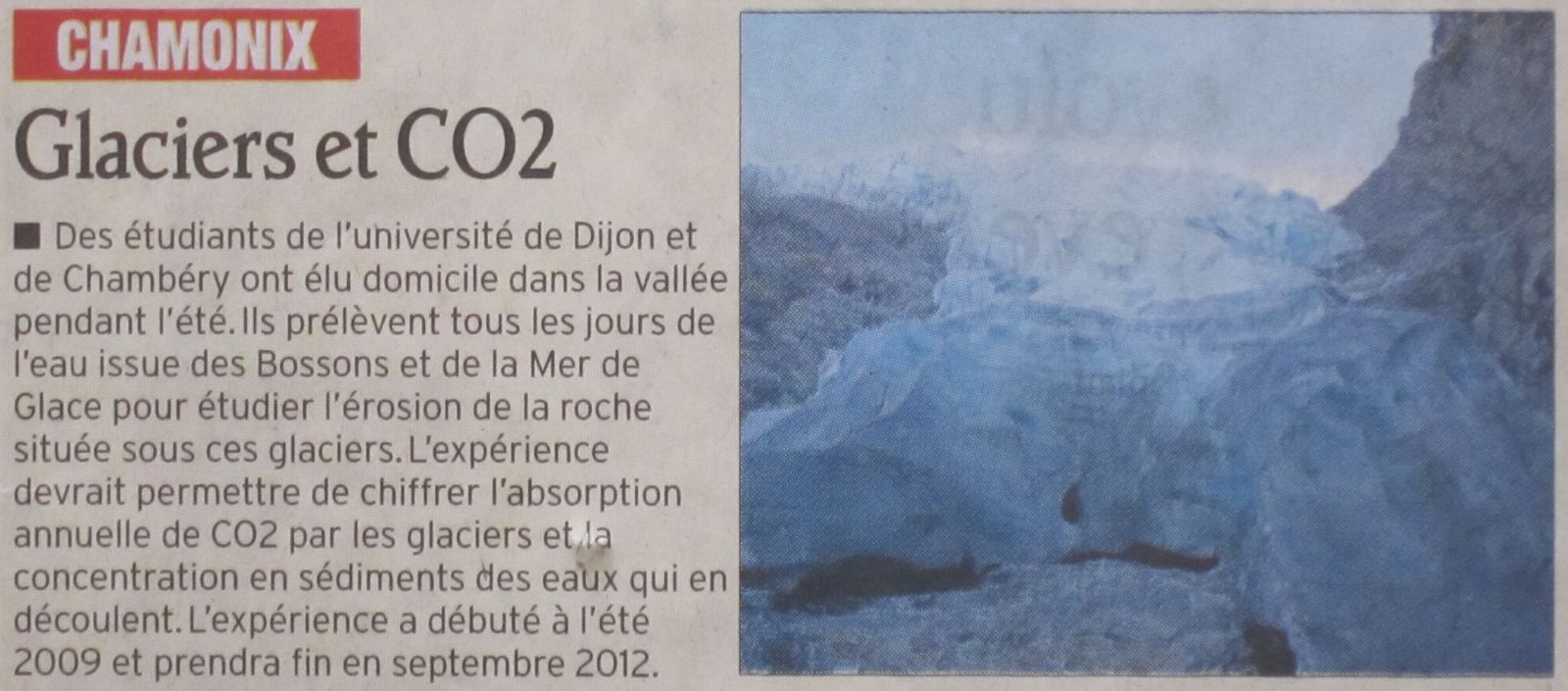 Les glaciers jouent un rôle dans le stockage de carbone par la combinaison du CO2 de l’atmosphère avec l’eau de fonte. L’acide carbonique ainsi formé facilite l’érosion. Jean-François Buoncristiani, Maître de Conférences à l’Université de Bourgogne et des chercheurs de Chambéry, Grenoble, Lyon étudient le phénomène sur les glaciers du Mont Blanc.