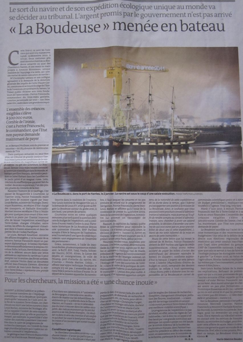 Extrait : ILS SONT 31 SIGNATAIRES et se présentent comme membres de « l’équipage scientifique » de La Boudeuse. Quelques jours après l’annonce, le 1er juin 2010, de la fin de la mission Terre-Océan, ces chercheurs ont écrit une lettre ouverte à Jean-Louis Borloo, ministre de l’écologie, afin de lui rappeler l’intérêt de cette expédition et plaider pour qu’elle se poursuive. Notant, par exemple, la possibilité d’aller visiter des contrées quasiment inaccessibles dans le cadre de programmes de recherche classiques ; ou l’intérêt du brassage pluridisciplinaire qui s’opère sur un bateau consacré à l’exploration… Le géologue Jean-François Buoncristiani est l’un d’entre eux.